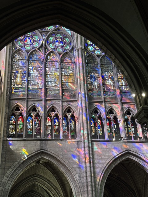ステンドグラスの眩い光に包まれ虹色に輝く大聖堂内と厳かに並ぶ王家の墓とのコントラストに、
